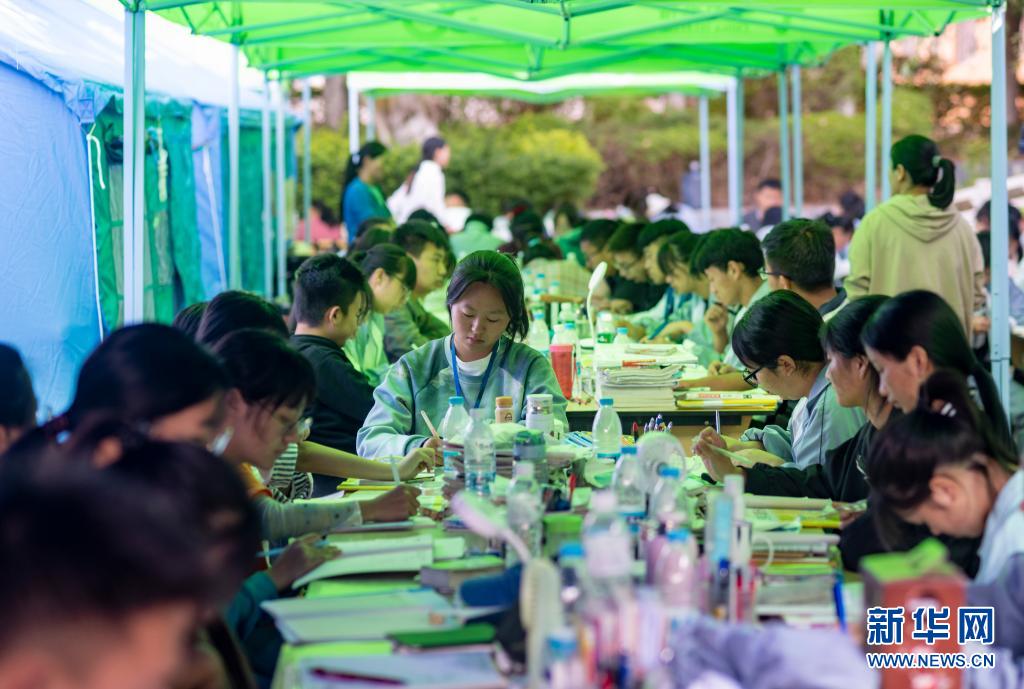5月24日,漾濞一中高三年級學生在帳篷下學習。新華社記者胡超攝