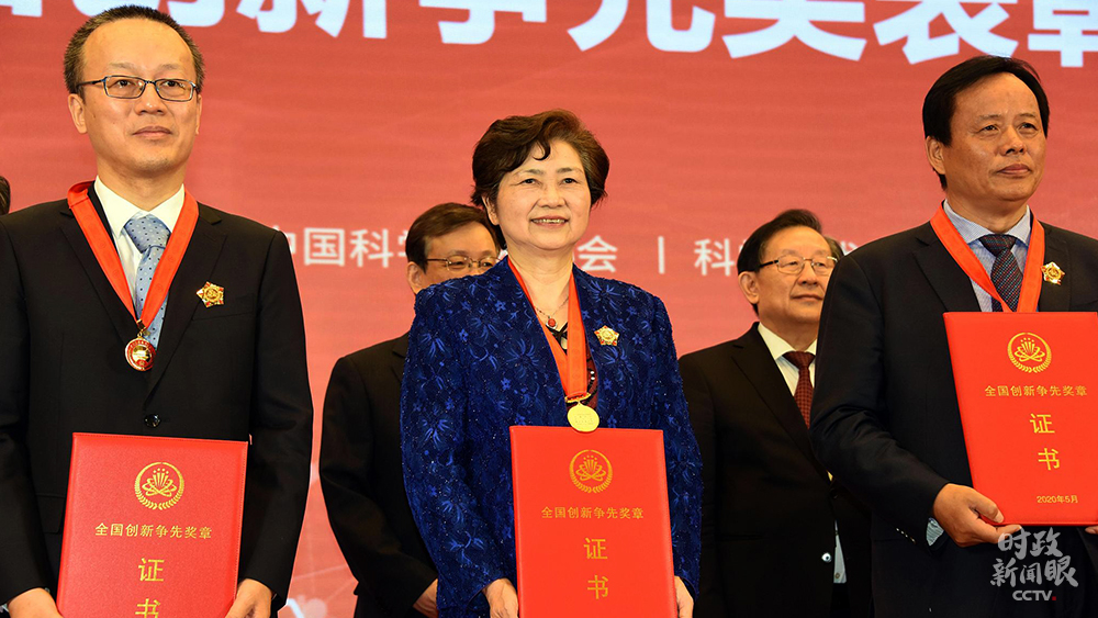 △2020年5月30日,李蘭娟院士(中)獲頒第二屆全國(guó)創(chuàng)新?tīng)?zhēng)先獎(jiǎng)?wù)隆#▓D/視覺(jué)中國(guó))