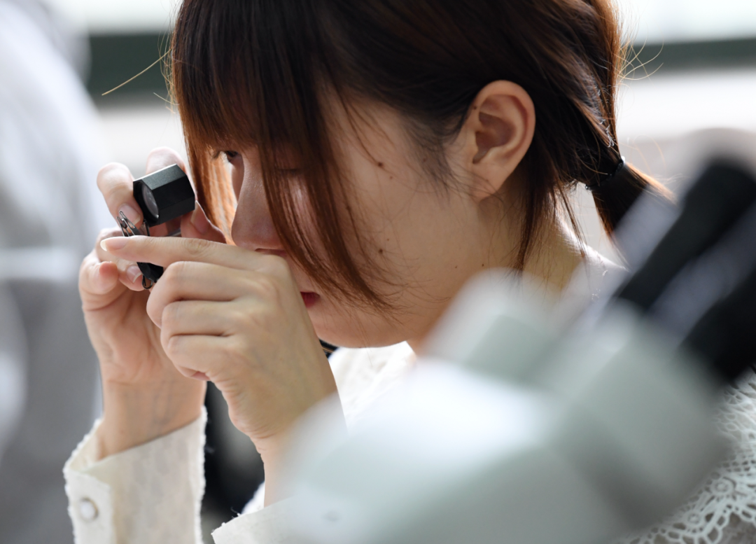 ▲在長安大學(xué)珠寶鑒定實(shí)驗(yàn)室,地質(zhì)學(xué)專業(yè)寶玉石學(xué)與珠寶鑒定方向的學(xué)生正在練習(xí)實(shí)驗(yàn)儀器的使用方法。新華社照片
