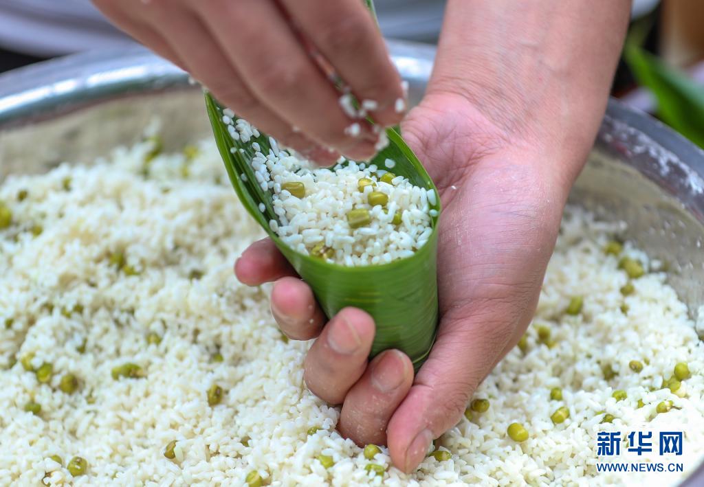 6月2日,貴州省銅仁市玉屏侗族自治縣亞魚鄉(xiāng)郭家灣村村民參加包粽子比賽。新華社發(fā)(李昆攝)