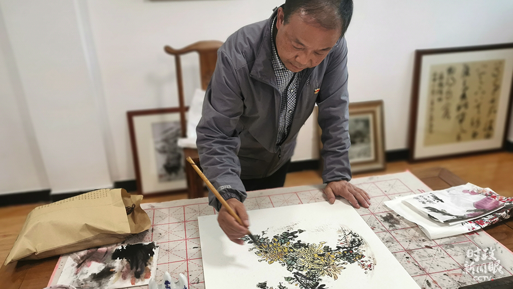 △55歲的魏真盈是社區(qū)書畫室的國畫指導(dǎo)老師。(總臺(tái)央視記者覃思、馬超拍攝)