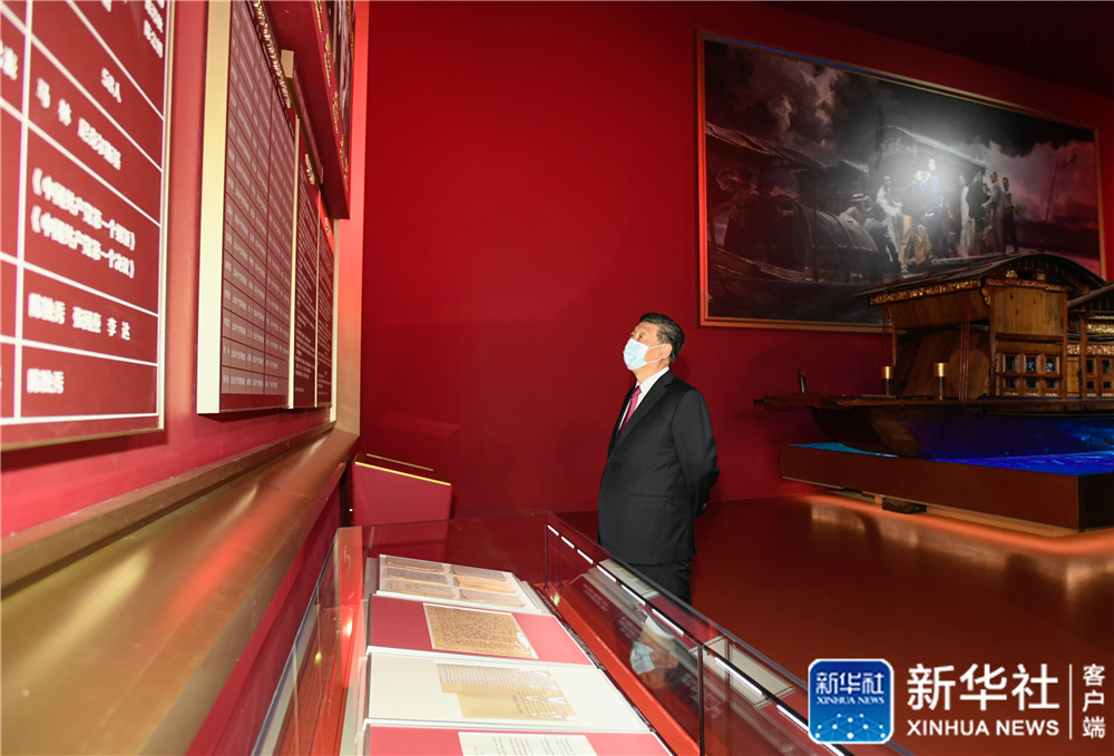 6月18日,黨和國家領(lǐng)導(dǎo)人習(xí)近平、李克強(qiáng)、栗戰(zhàn)書、汪洋、王滬寧、趙樂際、韓正、王岐山等在中國共產(chǎn)黨歷史展覽館參觀“‘不忘初心、牢記使命’中國共產(chǎn)黨歷史展覽”。這是習(xí)近平在參觀展覽。新華社記者 李學(xué)仁 攝