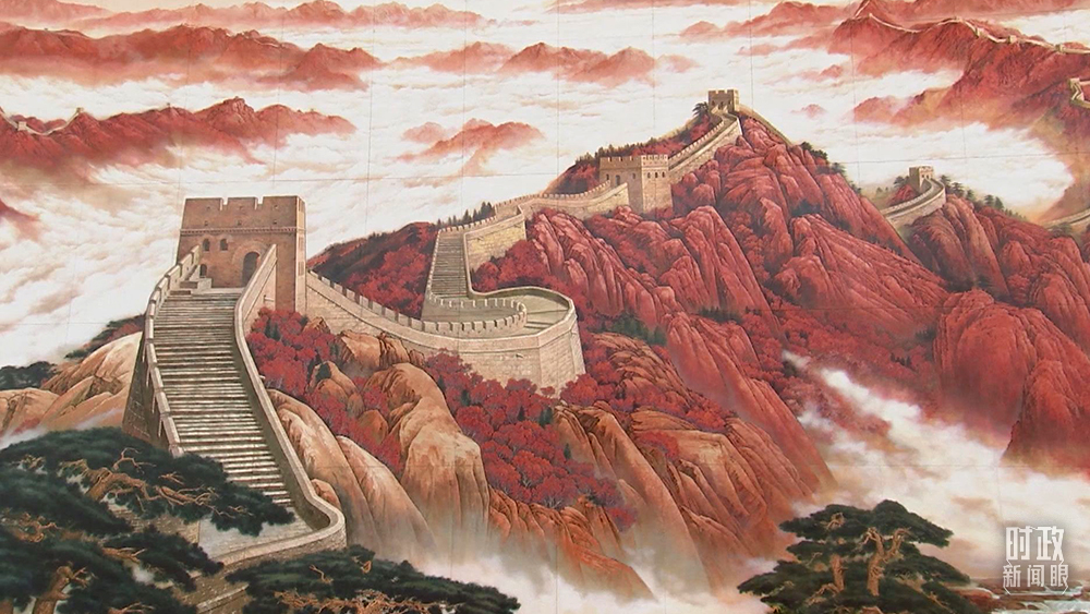 △氣勢(shì)磅礴的長(zhǎng)城主題漆畫(總臺(tái)央視記者王策拍攝)
