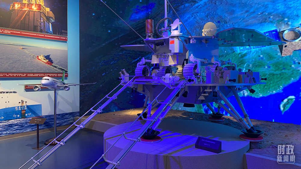 △天問(wèn)一號(hào)火星探測(cè)器模型,比例為1∶1。(總臺(tái)央視記者許達(dá)拍攝)