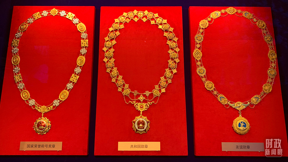 △從左至右分別是國(guó)家榮譽(yù)稱號(hào)獎(jiǎng)?wù)?、共和?guó)勛章、友誼勛章(總臺(tái)央視記者石丞拍攝)