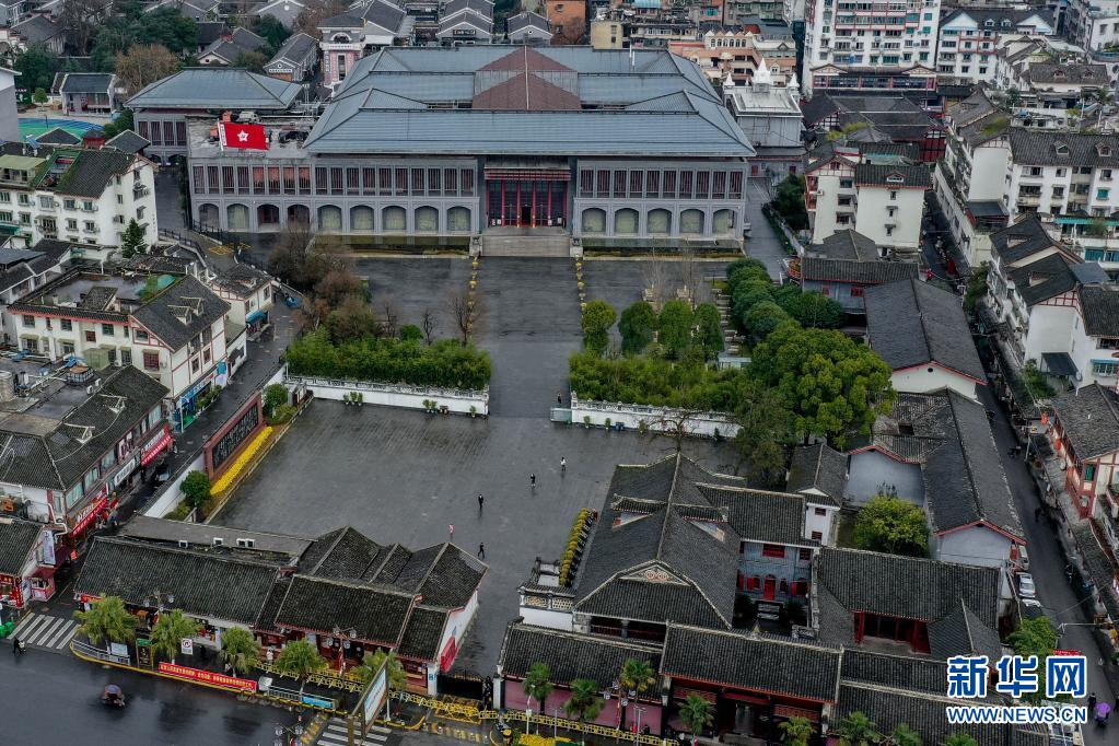 這是遵義會(huì)議紀(jì)念館全景(1月26日,無人機(jī)照片攝)。新華社記者 歐東衢 攝