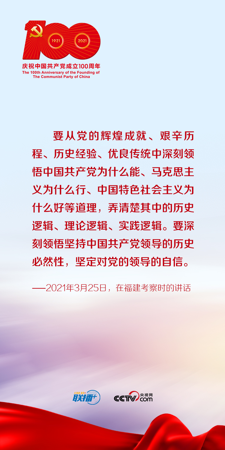 今年是中國共產(chǎn)黨成立100周年。央視網(wǎng)《聯(lián)播+》特梳理總書記關(guān)于知史愛黨的重要論述,與您一起堅定理想信念,不斷增強守初心、擔(dān)使命的思想自覺和行動自覺。