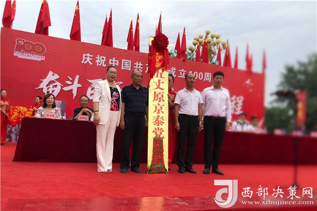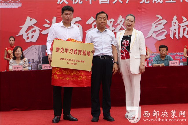西部決策網(wǎng)訊(記者李乃斌)2021年6月23日,由中央廣播電視總臺(tái)——中央新影發(fā)現(xiàn)之旅頻道匠心精神欄目組、中國(guó)共產(chǎn)黨陜西京泰集團(tuán)總支部委員會(huì)主辦,陜西省紡織行業(yè)協(xié)會(huì)、寶雞市民營(yíng)企業(yè)協(xié)會(huì)、寶雞市女企業(yè)家協(xié)會(huì)、寶雞市老年科技工作者協(xié)會(huì)協(xié)辦的“奮斗百年路 啟航新征程”慶祝中國(guó)共產(chǎn)黨成立100周年大會(huì)暨黨史館授牌儀式,在陜西五丈原京泰黨史館廣場(chǎng)舉行。