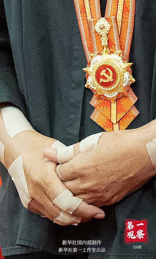 一雙貼滿膏藥的普通勞動(dòng)者的手,捧起代表黨內(nèi)最高榮譽(yù)的“七一勛章”。