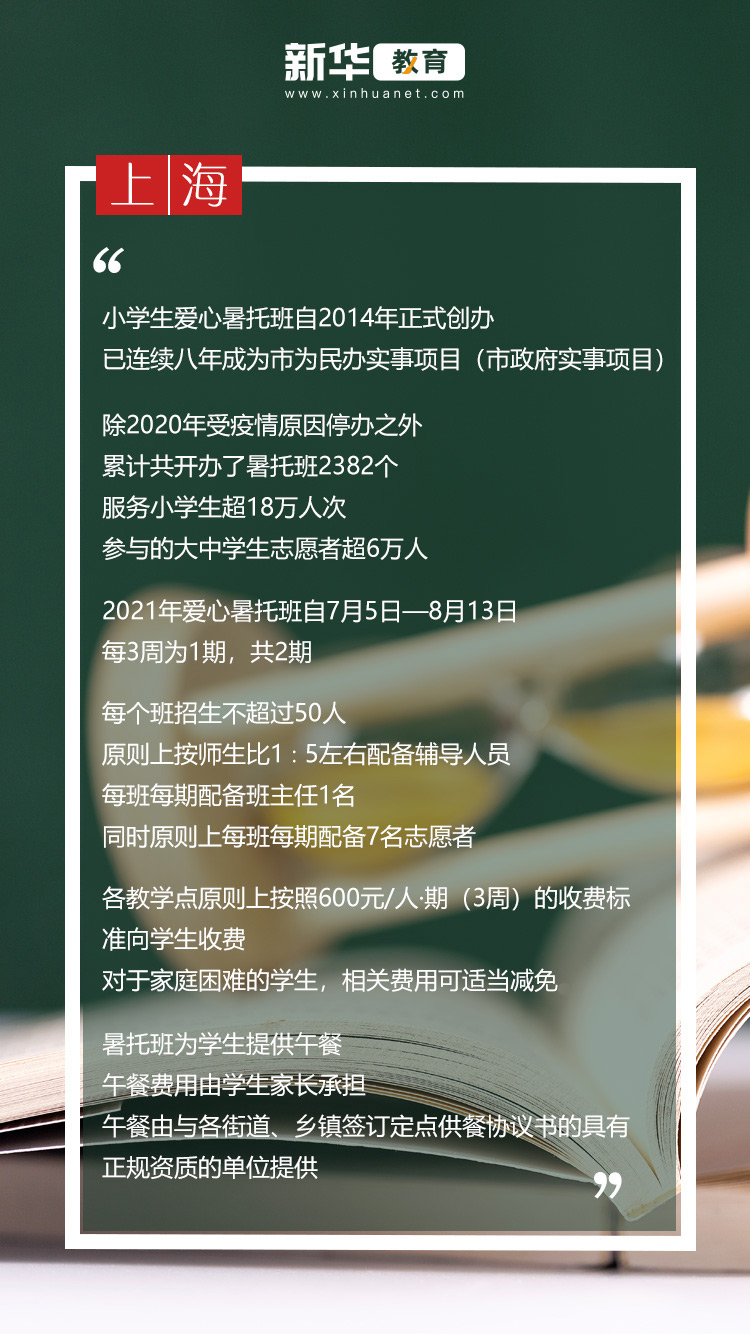 學(xué)生假期“看護(hù)難”是市民重點(diǎn)關(guān)心的問(wèn)題。民生無(wú)小事,長(zhǎng)期以來(lái)多地探索多途徑解決。以上海市為例,為解決家長(zhǎng)假期后顧之憂,自2014年起就創(chuàng)辦了小學(xué)生愛(ài)心暑托班。