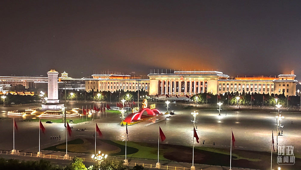 △7月6日,夜幕中的人民大會堂和天安門廣場。(總臺央視記者薛冠南拍攝)
