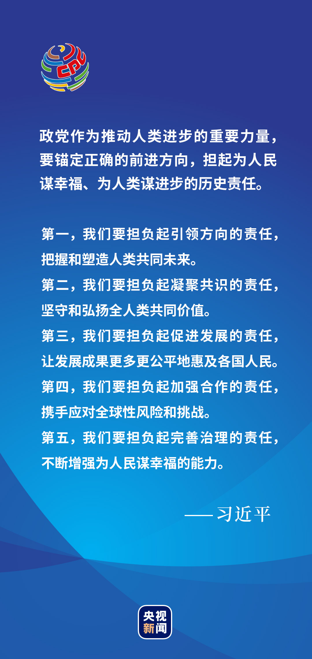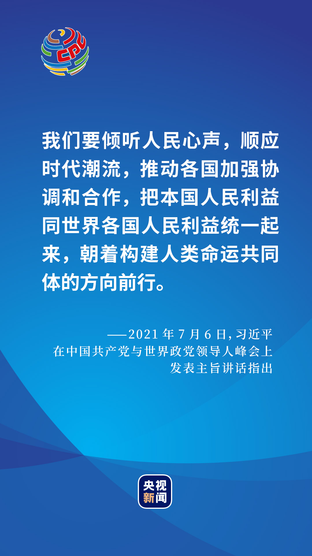 今天,全球疫情形勢依然嚴峻,經(jīng)濟復蘇前景不明。中國共產(chǎn)黨與各國政黨和政治組織分享治黨治國經(jīng)驗,始終同大家一道,站在歷史正確的一邊,站在人類進步的一邊,為推動構建人類命運共同體、建設更加美好的世界作出新的更大貢獻!