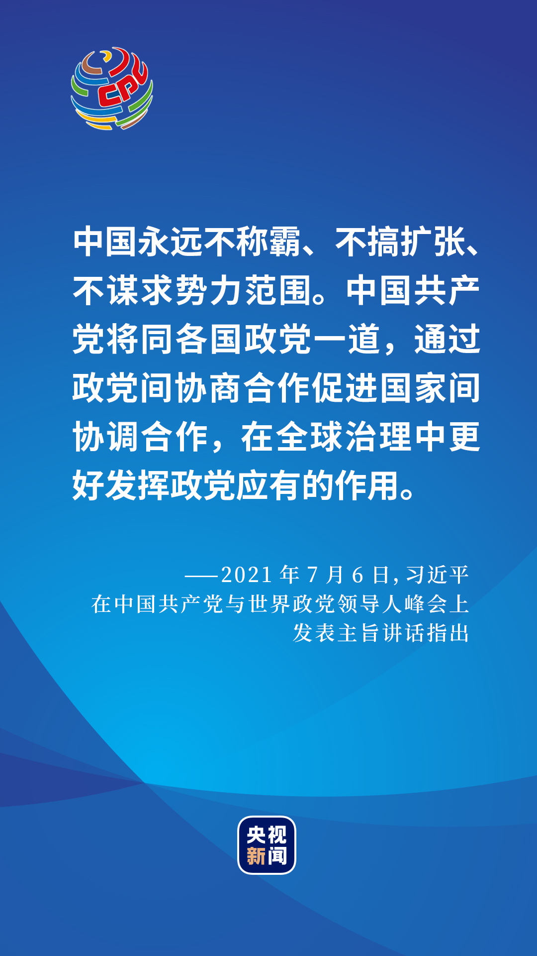 2021年7月6日,在中國共產(chǎn)黨與世界政黨領導人峰會上,習近平總書記給出了一個百年大黨的選擇和主張。