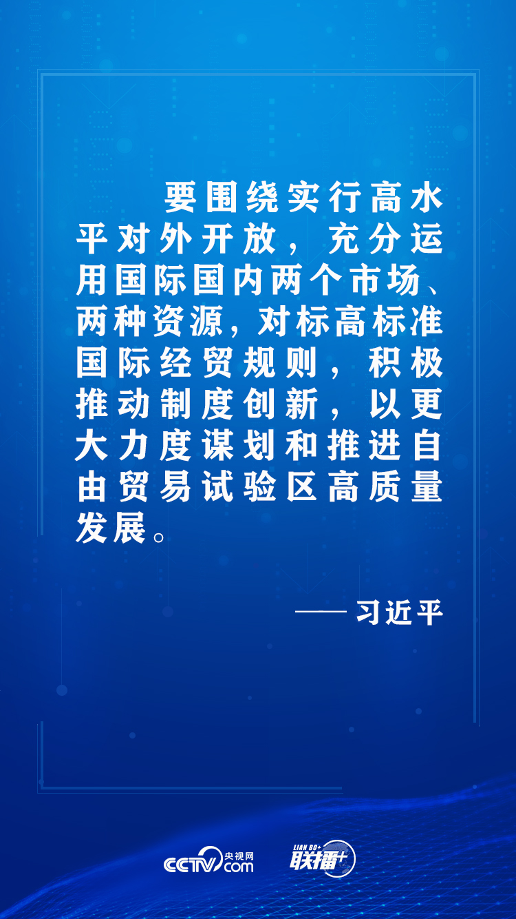 要深入推進(jìn)高水平制度型開(kāi)放,賦予自由貿(mào)易試驗(yàn)區(qū)更大改革自主權(quán),加強(qiáng)改革創(chuàng)新系統(tǒng)集成,統(tǒng)籌開(kāi)放和安全,及時(shí)總結(jié)經(jīng)驗(yàn)并復(fù)制推廣,努力建成具有國(guó)際影響力和競(jìng)爭(zhēng)力的自由貿(mào)易園區(qū),發(fā)揮好改革開(kāi)放排頭兵的示范引領(lǐng)作用。