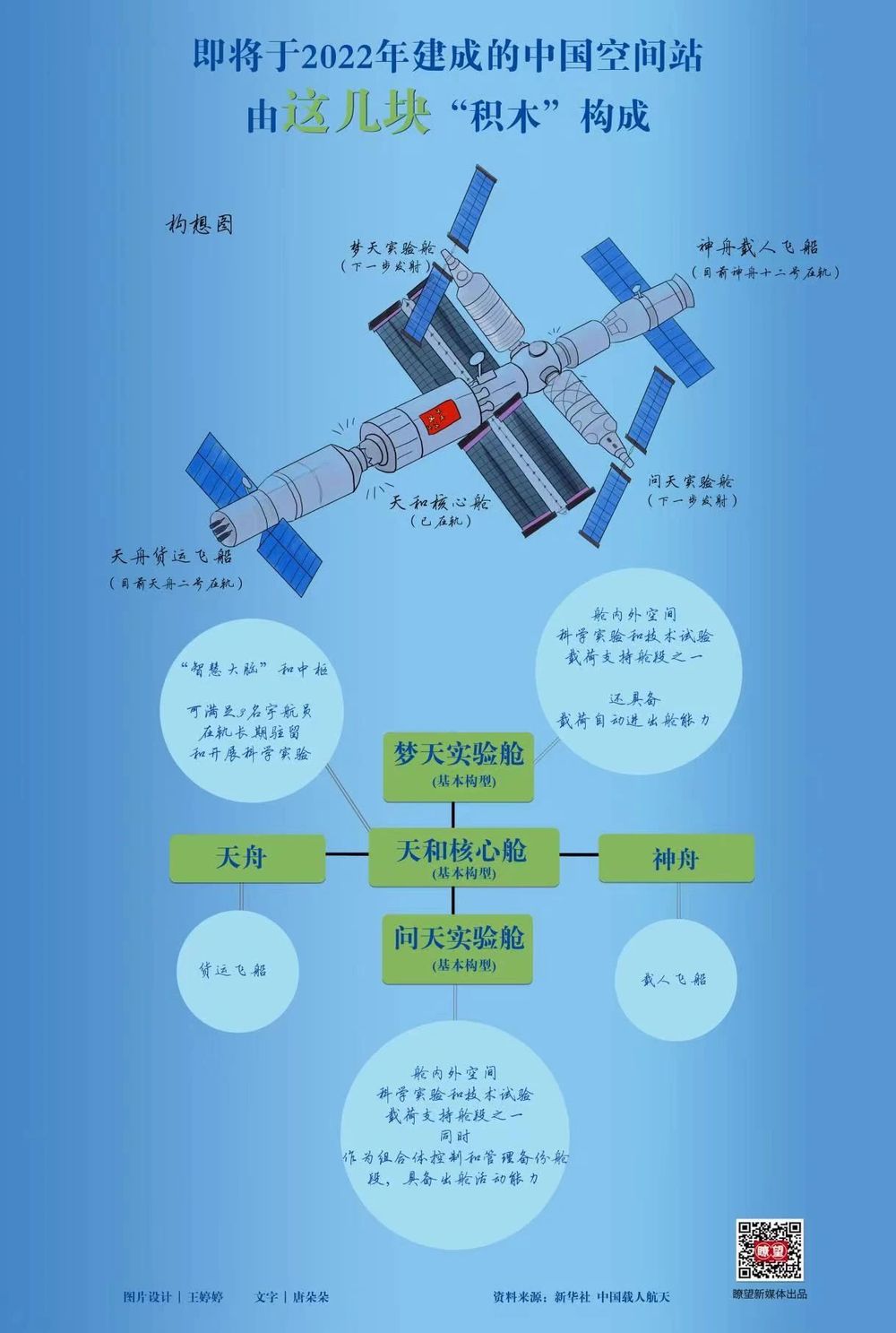 ▲ 這幾天大家觀測的中國空間站是這樣構(gòu)成的(瞭望新媒體出品,繪圖制作 | 王婷婷;創(chuàng)意統(tǒng)籌 | 唐朵朵)