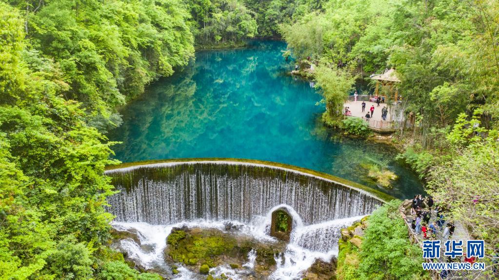 游客在荔波縣小七孔景區(qū)游玩(4月15日攝,無人機(jī)照片)。新華社記者 陶亮 攝