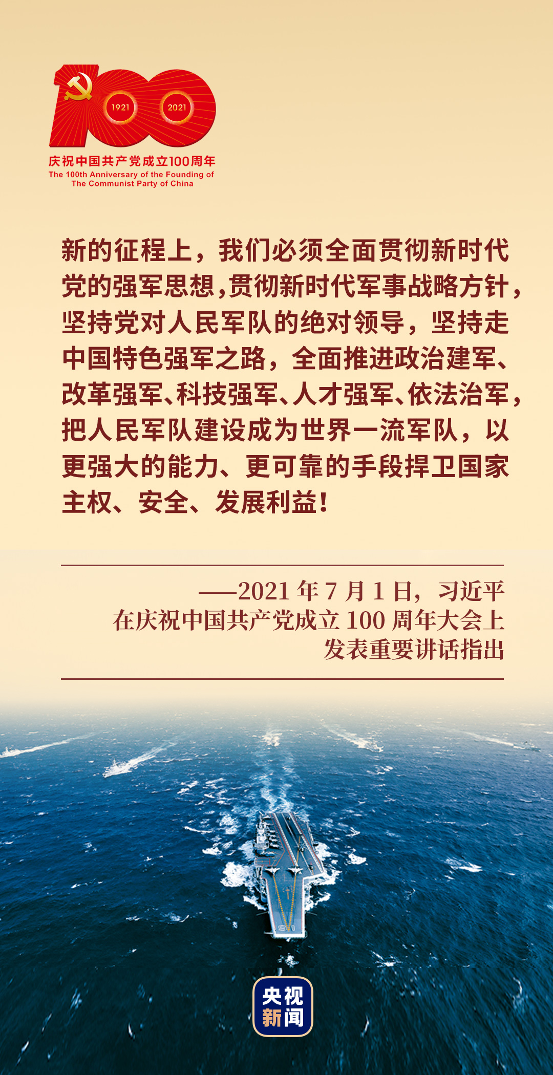 “把人民軍隊建設成為世界一流軍隊,以更強大的能力、更可靠的手段捍衛(wèi)國家主權、安全、發(fā)展利益!”2021年7月1日,習近平總書記在慶祝中國共產(chǎn)黨成立100周年大會上的鏗鏘話語,指引現(xiàn)實,啟迪未來。