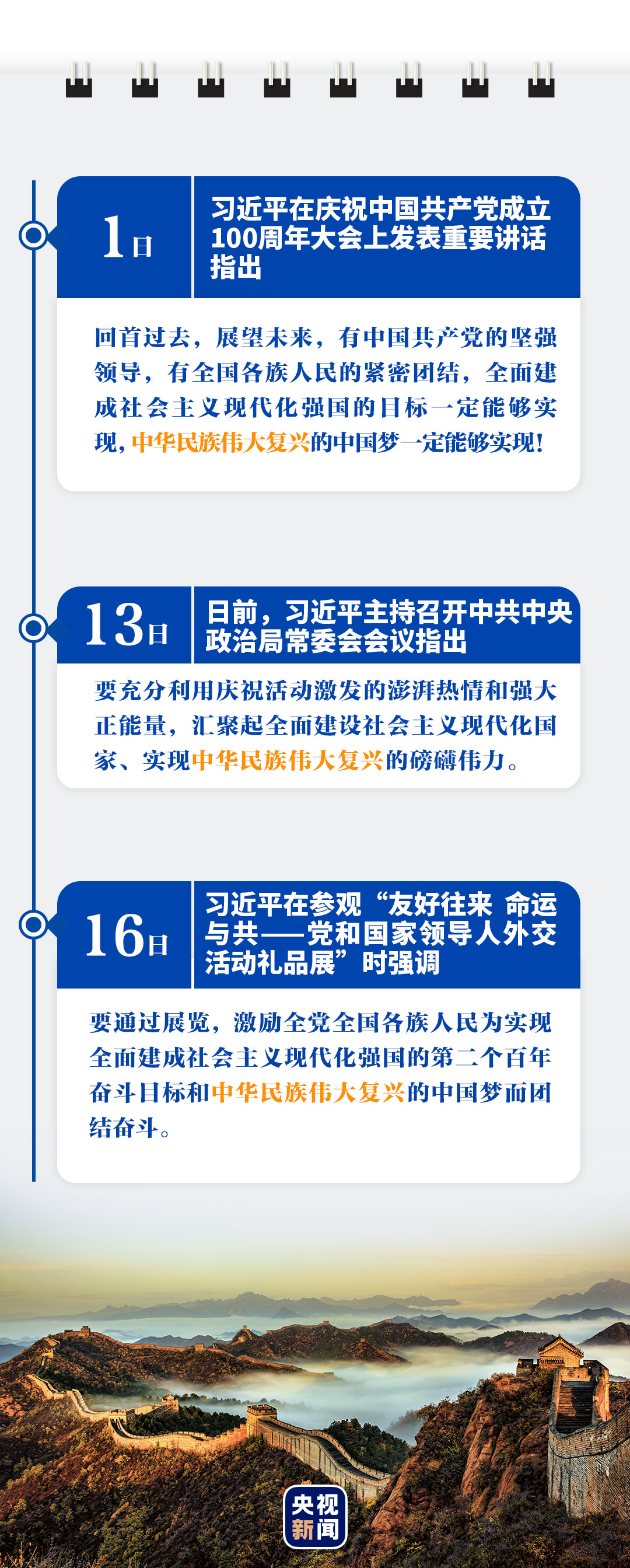 “這一百年來(lái)開辟的偉大道路、創(chuàng)造的偉大事業(yè)、取得的偉大成就,必將載入中華民族發(fā)展史冊(cè)、人類文明發(fā)展史冊(cè)!”總書記的話語(yǔ)擲地有聲。