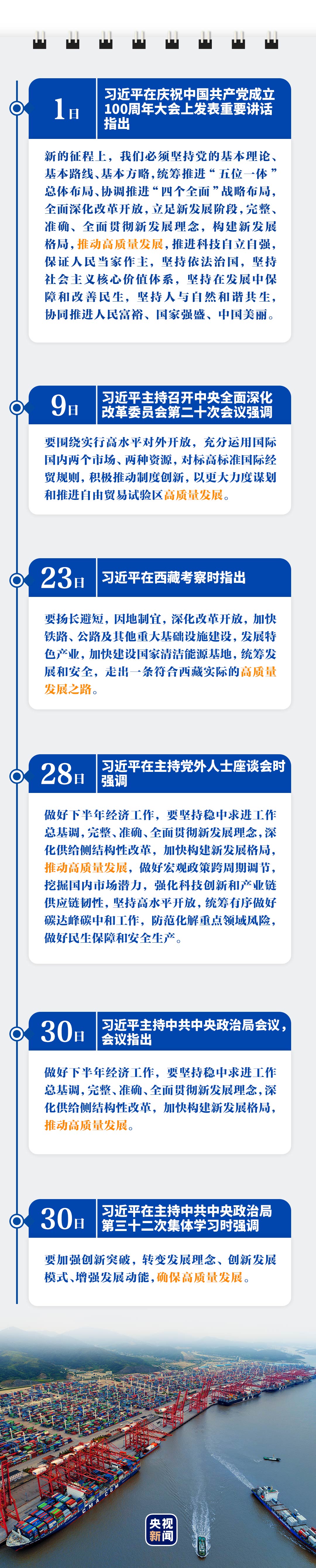 7月里,中央全面深化改革委員會(huì)第二十次會(huì)議、黨外人士座談會(huì)、中共中央政治局會(huì)議……習(xí)近平總書記主持一系列重要會(huì)議,高質(zhì)量發(fā)展都是題中之義。