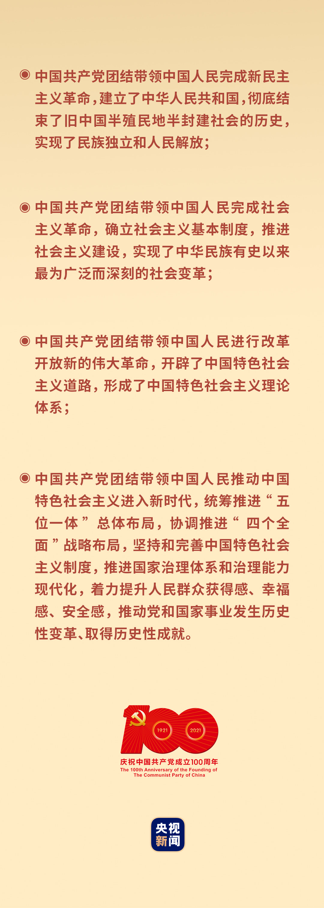 一百年來,中國共產(chǎn)黨團(tuán)結(jié)海內(nèi)外全體中華兒女,克服一個(gè)又一個(gè)困難,戰(zhàn)勝一場又一場挑戰(zhàn),在中華民族發(fā)展史和人類社會進(jìn)步史上書寫了壯麗篇章——