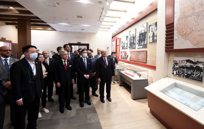 6月3日,阿拉伯國(guó)家駐華使節(jié)及阿盟駐華代表處代表等在西柏坡紀(jì)念館參觀。新華社記者 王曉 攝
