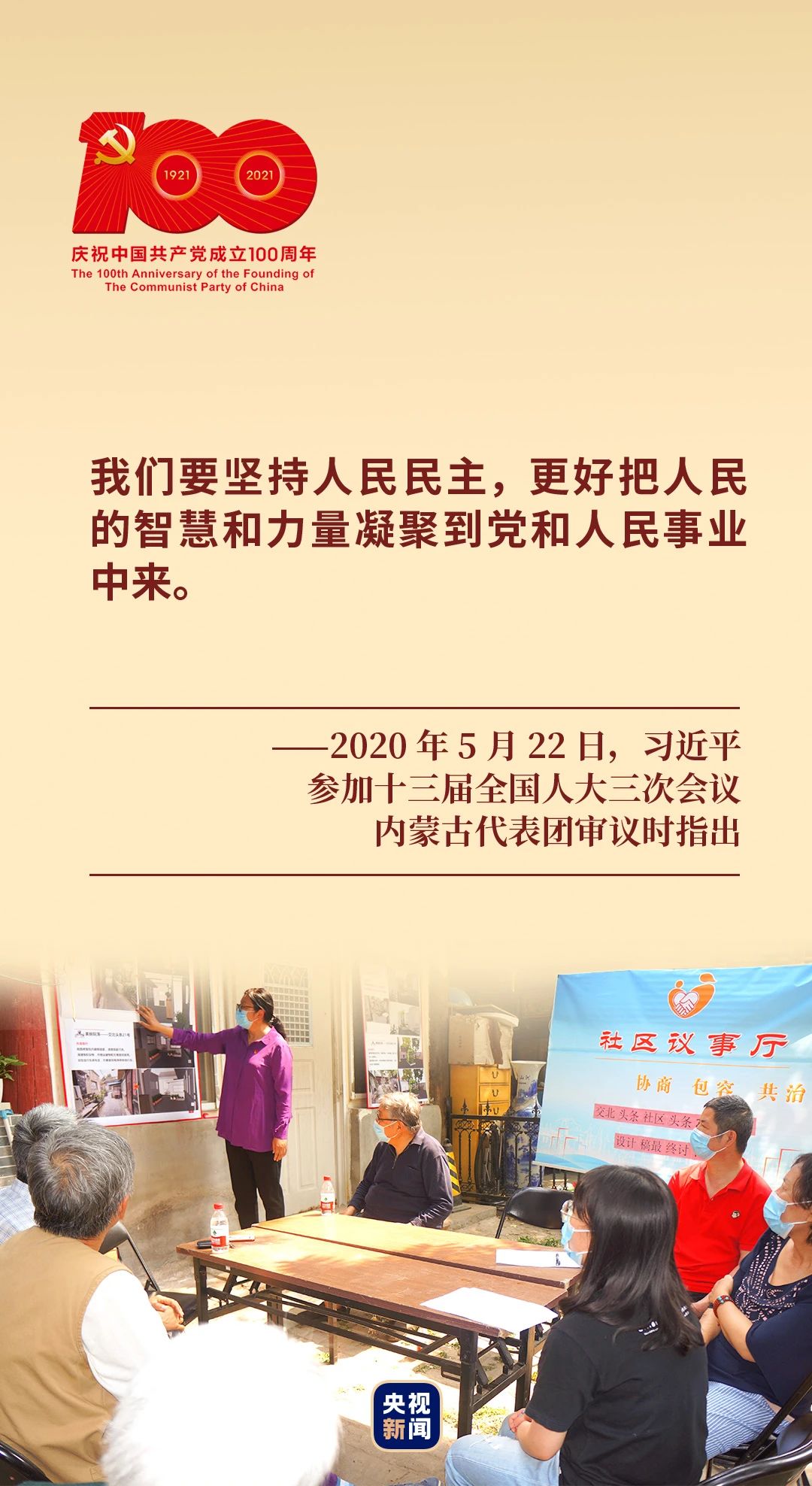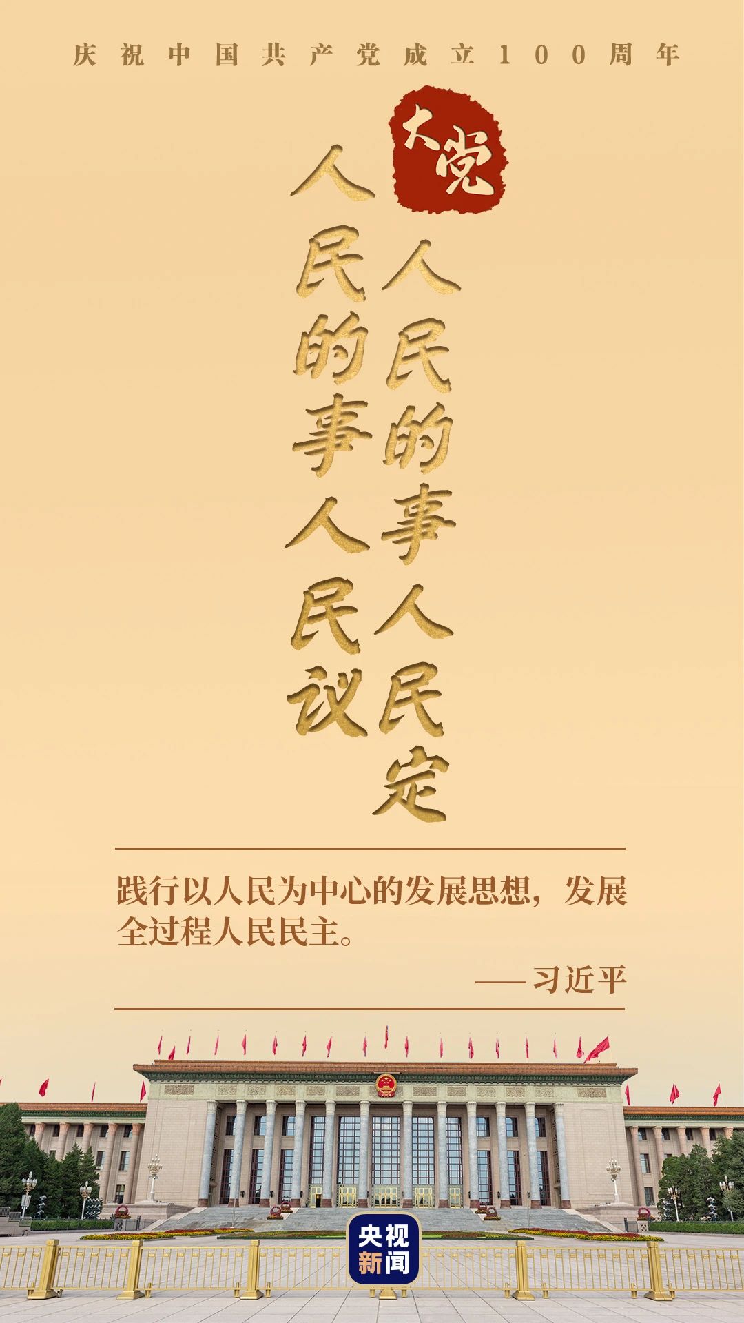 2021年7月1日,習(xí)近平總書記在慶祝中國共產(chǎn)黨成立100周年大會上發(fā)表重要講話指出,“踐行以人民為中心的發(fā)展思想,發(fā)展全過程人民民主。”