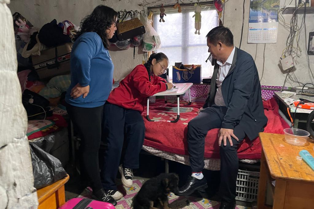 9月6日,在漠河市北極鎮(zhèn)北極村,馬建國到學生家中家訪。新華社記者楊思琪 攝