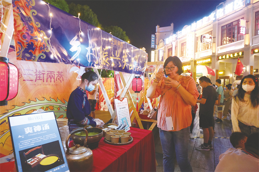 據(jù)悉,國慶期間,有關(guān)部門還在“三街兩巷”舉辦“八桂風(fēng)物 獻(xiàn)禮華誕——助力鄉(xiāng)村振興特色展”,展示展銷北海潿洲島特色干海味、玉林博白特色牛巴、永福羅漢果花茶等特色農(nóng)副產(chǎn)品,以及龍勝侗族扎染技藝、靖西壯族藍(lán)染技藝等廣西非物質(zhì)文化遺產(chǎn)工藝產(chǎn)品,鞏固脫貧攻堅成果、助力鄉(xiāng)村振興。(記者宋延康)