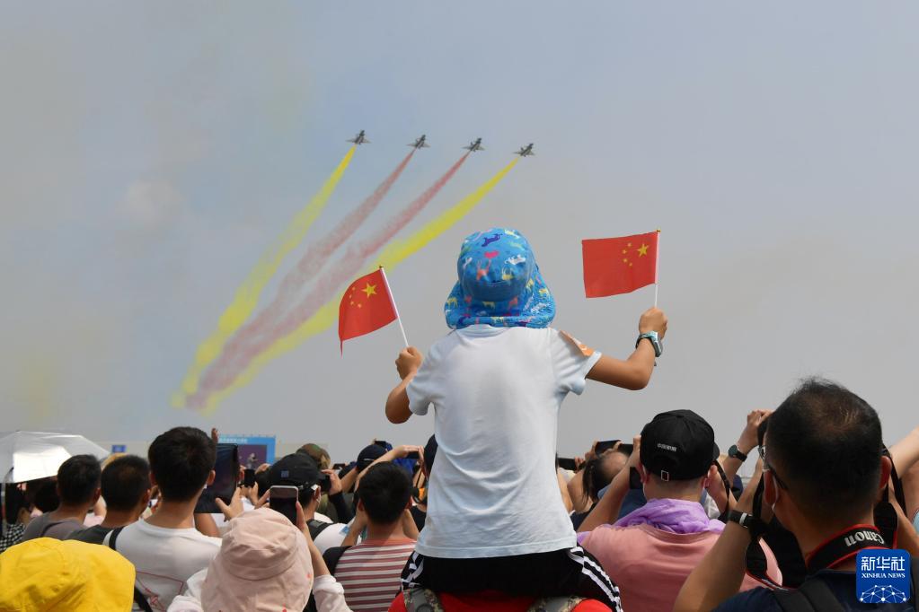 中國航展現(xiàn)場,五星紅旗隨處可見,成為全場最鮮艷的顏色。藍天之上,戰(zhàn)鷹向祖國報告:空軍官兵堅決捍衛(wèi)國家主權(quán),堅決捍衛(wèi)祖國統(tǒng)一,堅定維護世界和平。 新華社記者劉濟美、高玉嬌、劉一諾