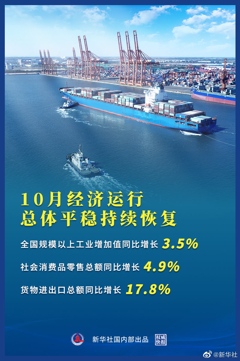 “總的來看,10月份經(jīng)濟(jì)運(yùn)行總體平穩(wěn)持續(xù)恢復(fù),發(fā)展韌性繼續(xù)顯現(xiàn)。但也要看到,當(dāng)前國際環(huán)境依然復(fù)雜嚴(yán)峻,不穩(wěn)定不確定因素仍然較多,國內(nèi)發(fā)展中階段性結(jié)構(gòu)性矛盾猶存,保持經(jīng)濟(jì)穩(wěn)定恢復(fù)仍需加力。”國家統(tǒng)計(jì)局新聞發(fā)言人、國民經(jīng)濟(jì)綜合統(tǒng)計(jì)司司長付凌暉說。