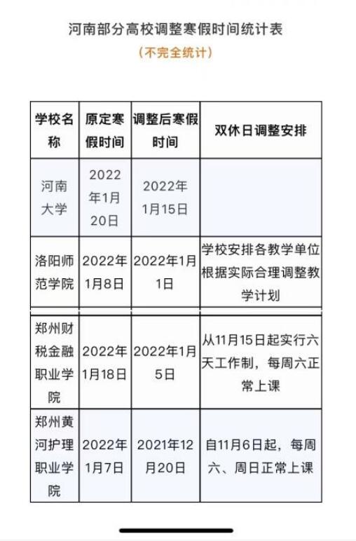 以河南為例,目前已有河南大學、河南農業(yè)大學、周口師范學院等20余所高校明確提前放假,多數學校的寒假開始時間較之前安排提前了5天至14天,鄭州黃河護理職業(yè)學院更是直接將放假時前提前至12月20號。