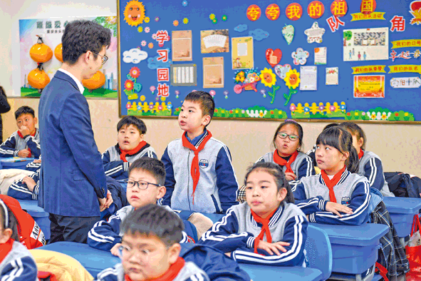 12月3日,在湖州市月河小學(xué)教育集團(tuán)湖東校區(qū),湖東街道邀請(qǐng)律師志愿者講解憲法知識(shí),與學(xué)生互動(dòng)。在國家憲法日來臨之際,浙江省湖州市吳興區(qū)組織開展憲法主題教育宣傳活動(dòng),走進(jìn)社區(qū)、學(xué)校宣講憲法知識(shí)。新華社記者黃宗治攝
