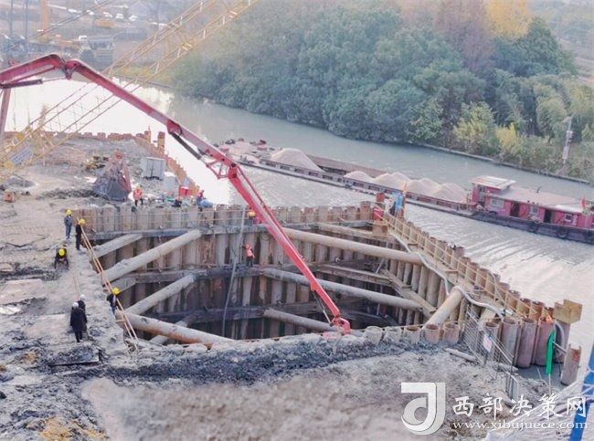 西部決策網訊12月7日,公司滬蘇湖鐵路項目全線最深的承臺基坑完成封底混凝土澆筑,標志著項目洞涇特大橋跨洞涇港Ⅵ級航道(60+100+60)米連續(xù)梁的施工全面展開。