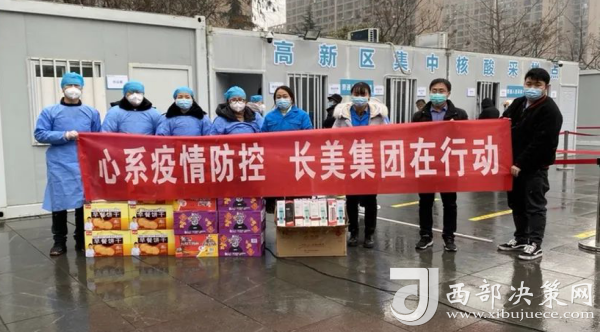 寒冬時節(jié)雪花漫天飛舞,白衣天使們從早8點至晚22點,他們一站就是14小時。感動也無處不在,陜西長美科技有限責(zé)任公司、愛心人士等也為寶雞高新醫(yī)院核酸檢測點的一線工作人員送來了保溫杯、餅干、泡面、暖寶寶等愛心物資。