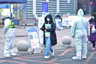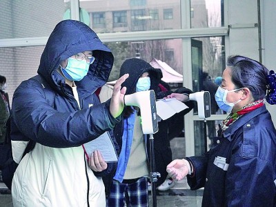 12月25日,考生在西安石油大學(xué)考點(diǎn)測(cè)溫。趙喜軍攝/光明圖片