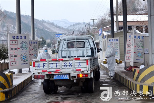12月26日,寧強(qiáng)縣漢源街道辦工作人員正在黃壩驛檢測(cè)點(diǎn)查驗(yàn)車輛和人員