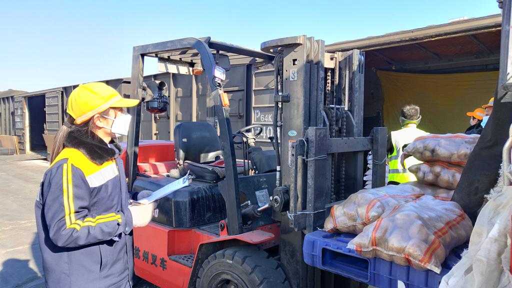 西安鐵路局西安西站貨物裝卸人員正在抓緊卸車(chē)。(照片由受訪者提供)