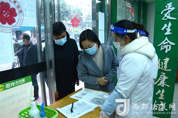 胡敏深入縣城艾斯大酒店、華盛超市、陽光大藥房等多家經(jīng)營單位,實地督查超市掃碼測溫、佩戴口罩、設(shè)置一米線等疫情防控措施落實情況,了解市場物資供應(yīng)、穩(wěn)定物價等情況;檢查酒店測溫登記、人員入住、消毒殺菌、供餐等情況;了解醫(yī)療防護用品價格和儲備、“四類藥品”管控等情況。