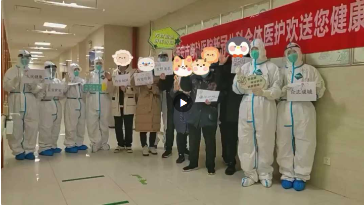 患者小呂與“大白”們一一招手道別。她馬上就要由西安胸科醫(yī)院轉(zhuǎn)出接受健康監(jiān)測(cè)、康復(fù)隔離。“大白加油,謝謝你們守護(hù)我們。”小呂在紙上寫(xiě)下臨別贈(zèng)語(yǔ),這是每一位出院患者的“道別儀式”。