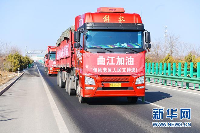 滿載旬邑生活保障物資的車隊(duì)直奔西安曲江