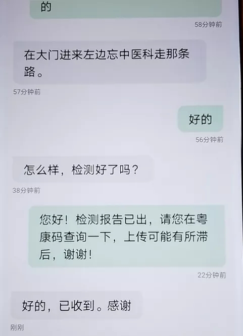 深圳市衛(wèi)健委宣教處處長王嶺表示,當時她在微信后臺看到留言后做了回復,收到孕婦丈夫“Prnliy”的電話信息后,她馬上聯系了龍華中心醫(yī)院,醫(yī)院迅速與網友“Prnliy”取得了聯系,問詢采樣的過程。
