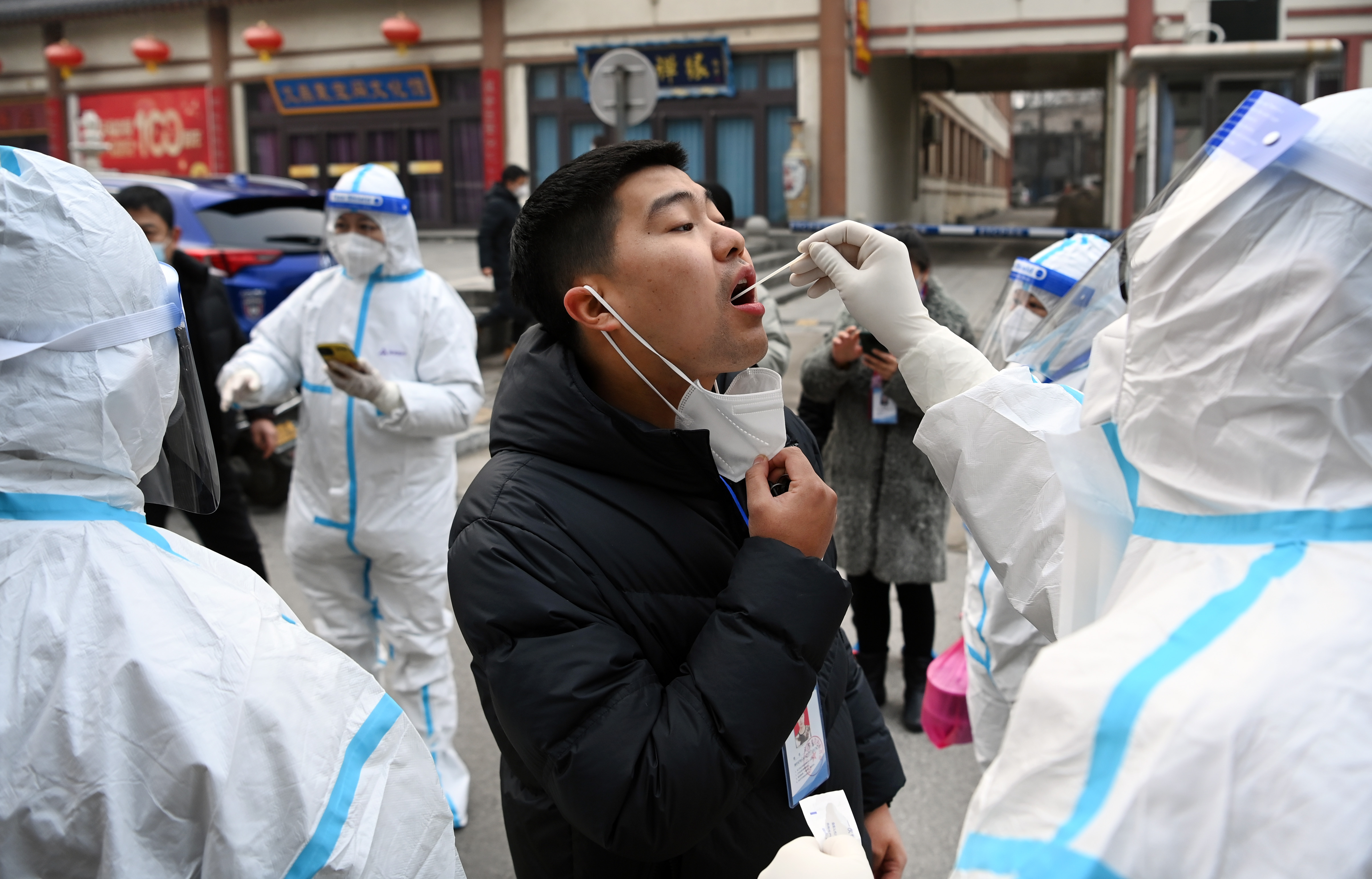 1月10日,西安市碑林區(qū)三學(xué)街社區(qū)“流動核酸檢測組”為居民做核酸檢測。新華社記者 陶明 攝
