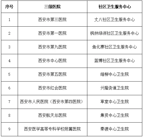 指定市屬三級(jí)醫(yī)院9家,對(duì)口支援高新區(qū)9個(gè)社區(qū)衛(wèi)生服務(wù)中心(或鄉(xiāng)鎮(zhèn)衛(wèi)生院,下同)(對(duì)口支援關(guān)系見(jiàn)附件),簽訂對(duì)口支援協(xié)議,下派內(nèi)科、外科、婦產(chǎn)科醫(yī)務(wù)人員駐點(diǎn)社區(qū)衛(wèi)生服務(wù)中心坐診,另外由西安市兒童醫(yī)院、西安市中醫(yī)醫(yī)院向丈八社區(qū)衛(wèi)生服務(wù)中心、楓林綠洲社區(qū)衛(wèi)生服務(wù)中心、魚化寨社區(qū)衛(wèi)生服務(wù)中心、藍(lán)博社區(qū)衛(wèi)生服務(wù)中心派中醫(yī)醫(yī)師和兒科醫(yī)師,確保社區(qū)衛(wèi)生服務(wù)中心能順利開(kāi)展基本診療工作。高新區(qū)要加強(qiáng)社區(qū)衛(wèi)生服務(wù)中心硬件建設(shè),配備必要的檢查、檢驗(yàn)設(shè)備,確保能夠完成基本醫(yī)療所必需的檢查和檢驗(yàn)項(xiàng)目。支援醫(yī)院與社區(qū)衛(wèi)生服務(wù)中心建立上下轉(zhuǎn)診關(guān)系,對(duì)超出社區(qū)衛(wèi)生服務(wù)中心診療能力的轉(zhuǎn)往上級(jí)醫(yī)院進(jìn)一步診治,支援醫(yī)院應(yīng)采取預(yù)約門診、綠色通道或預(yù)留床位等方式做好支持。