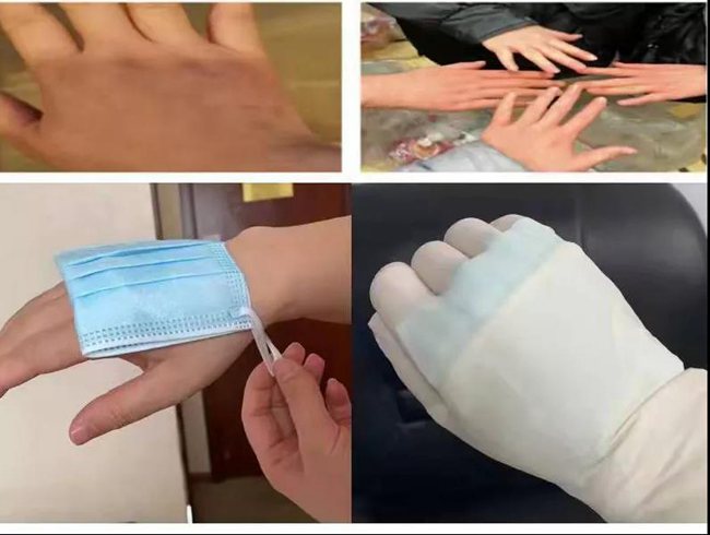 冬季的室外,還要反復進行手部消毒,一天工作下來,核酸采樣隊隊員們的手都被凍得像石頭一樣,又紅又腫。為了解決這個問題,北關(guān)核酸采樣隊隊長解林清輾轉(zhuǎn)反側(cè),終于想到可以把外科手套折疊后墊到手背關(guān)節(jié)部位,取得保暖的效果。經(jīng)過實踐操作,這項技術(shù)已經(jīng)在各核酸采樣隊伍內(nèi)推廣使用。