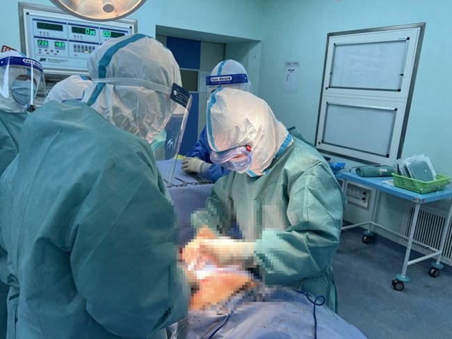 同時,護士長王沛第一時間打開隔離患者專用通道,再一次檢查確認隔離病房的設(shè)備情況,做好接收患者的準備。病房醫(yī)生則積極聯(lián)系手術(shù)室做好無核酸急診手術(shù)準備,僅30分鐘,孕婦就被接往手術(shù)室。