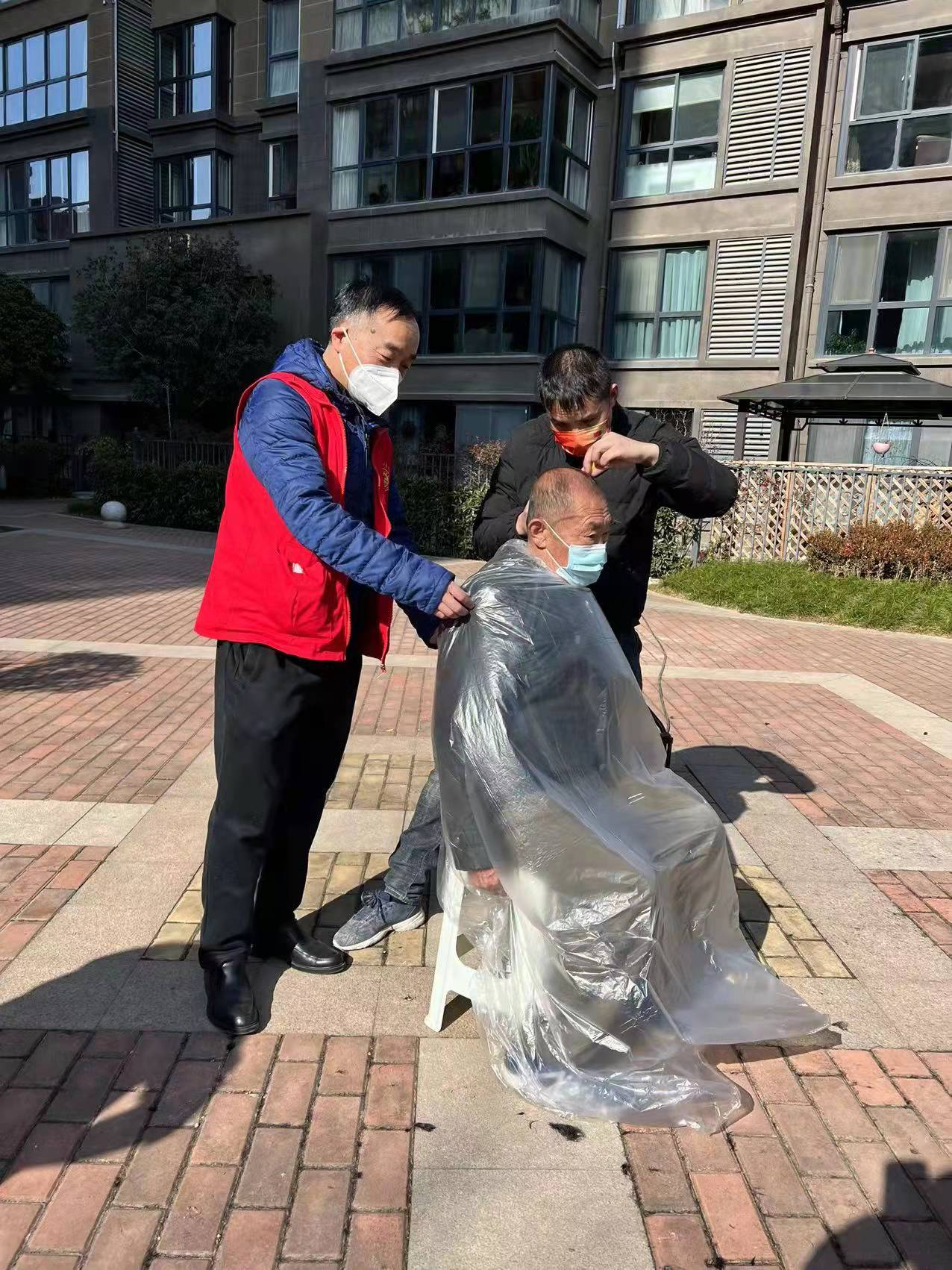 理發(fā)時,每位居民互相之間保持一定距離,理發(fā)師每理完發(fā)都會對工具進(jìn)行消毒處理。我們志愿者團(tuán)隊一直在旁邊協(xié)助打掃衛(wèi)生,幫助消毒,做著通知等服務(wù)工作。當(dāng)天的義剪活動受到小區(qū)居民們的一致稱贊。尤其受到老人們的稱贊,“太及時了!我的頭發(fā)長了,家里的暖氣又熱,不停地上火,這下好了,頭發(fā)一剪,整個人都輕松了。”小區(qū)王阿姨說。