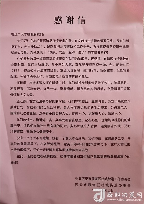 保衛(wèi)家園,心系群眾。中油測(cè)井全力響應(yīng)陜西省委組織部動(dòng)員號(hào)召,第一時(shí)間響應(yīng)調(diào)派干部員工投身抗疫,并向社區(qū)積極捐贈(zèng)防疫物資,目前已有151名黨員干部加入疫情防控支援保障隊(duì)伍,“下沉”到全市14個(gè)相關(guān)行政區(qū)、93個(gè)社區(qū)小區(qū),全面投身到所在社區(qū)核酸檢測(cè)、人員流調(diào)、信息統(tǒng)計(jì)、物資配送、值守執(zhí)勤、扶老助弱等工作中,充分發(fā)揮出測(cè)井志愿者在聯(lián)防聯(lián)控、群防群治中的積極作用。