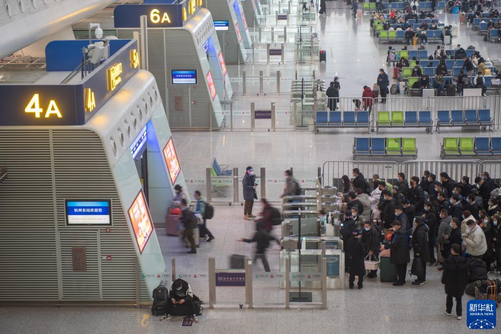 1月17日,杭州東站候車(chē)旅客在檢票進(jìn)站。新華社記者 江漢 攝