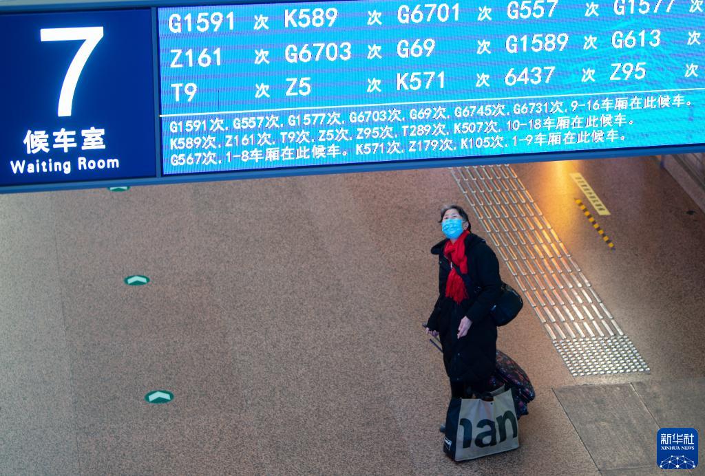 春運(yùn)首日,記者來(lái)到昆明南站。在西進(jìn)站口,旅客佩戴著口罩,在工作人員引導(dǎo)下有序進(jìn)站。