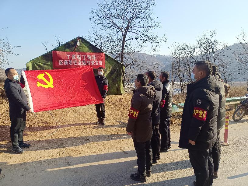 咸陽市長武縣丁家鎮(zhèn)丁陶路疫情防控臨時黨支部黨員向黨旗宣誓。 趙輝 攝